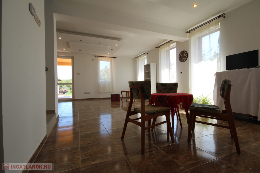 Szépen körbenapozott, helyiségei világosak, nagy üvegfelületei behozzák a természetet a belső térbe.