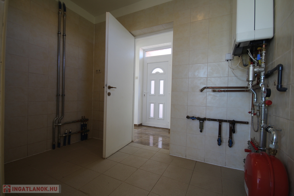 A ház fűtése kondenzációs gázkazánnal történik, minden helyiségében padlófűtéssel + radiátorokkal kiegészítve.